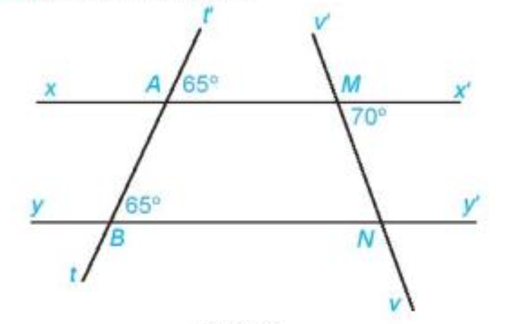 b) Ta có xx’ // yy’ suy ra \(\widehat {MNB} = \widehat {x’MN} = {70^o}\)(hai góc so le trong)