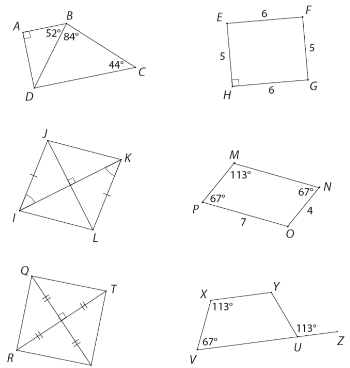Cho biết các tứ giác trong Hình 3.93 là hình nào trong các hình: hình thang, hình thang cân, hình bình hành, hình thoi, hình chữ nhật, hình vuông. Vì sao?