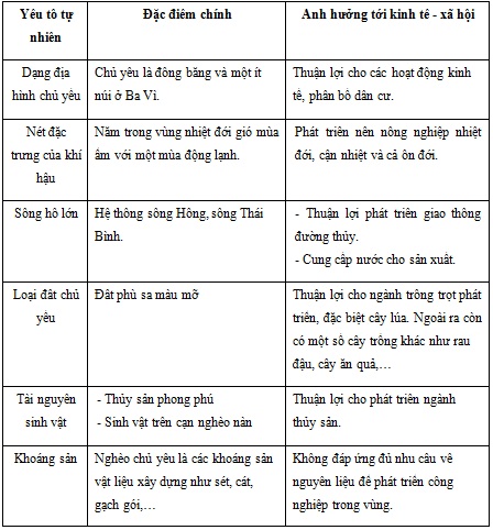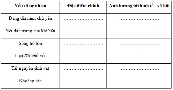 Giải bài 3 trang 100 vở bài tập Địa lí 9, Điền các nội dung vào bảng sau
