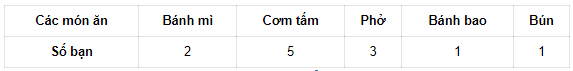 Hãy lập bảng dữ liệu ban đầu để tìm hiểu về món ăn sáng ưa thích nhất của các bạn trong tổ của em và lập bảng thống kê tương ứng.