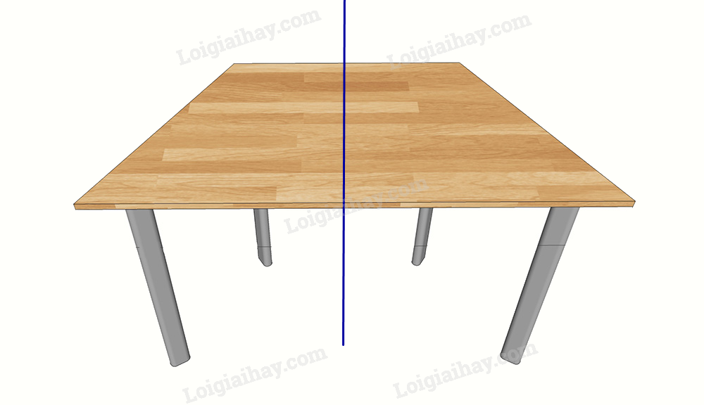 Chiếc bàn học hình chữ nhật có tâm đối xứng là giao của 2 đường chéo, trục đối xứng là đường thẳng đi qua trung điểm của 2 cạnh song song.