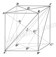 Chứng minh tương tự ta có trọng tâm G’ của tam giác B’D’C là giao điểm của AC’ và CO’.