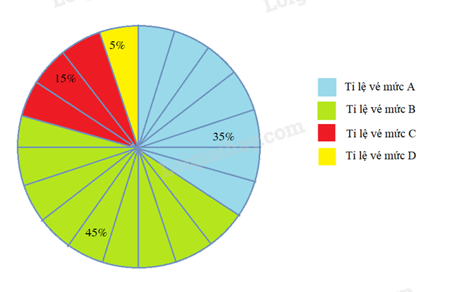 Ban tổ chức của giải thi đấu thể thao bán vé theo bốn mức A, B, C, D. Tỉ lệ phân chia các vé ở bốn mức A, B, C, D lần lượt là 35%, 45%, 15%, 5%.
