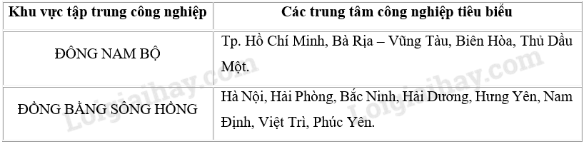 Dựa vào nội dung SGK và kiến thức đã học, hãy kể tên một số trung tâm công nghiệp tiêu biểu của hai khu vực tập trung công nghiệp lớn nhất cả nước.