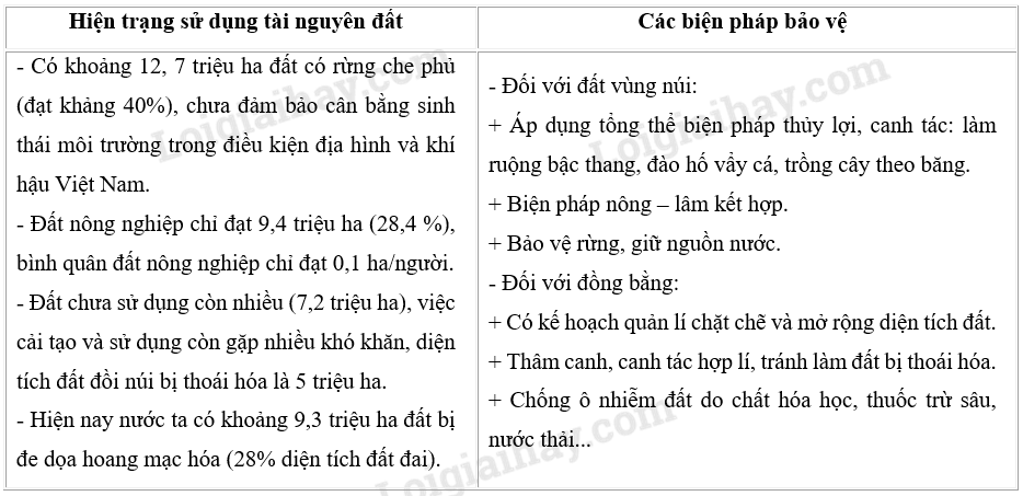 Hiện trạng sử dụng tài nguyên đất Các biện pháp bảo vệ