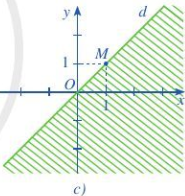 Nửa mặt phẳng không bị gạch (không kể đường thẳng d) ở mỗi Hình 7a, 7b, 7c là miền nghiệm của bất phương trình nào?