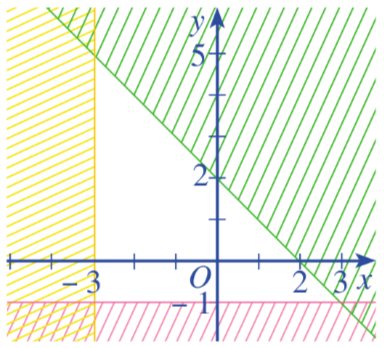 Ta thấy các đường thẳng trên hình là \(y =  – 1;x =  – 3;x + y =  – 2\)