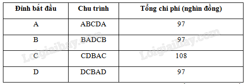 Vậy có ba chu trình ABCDA, BADCB, DCBAD thỏa mãn đề bài và chi phí thấp nhất là 97 nghìn đồng.