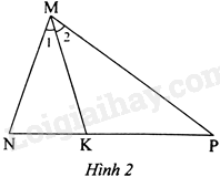 Vì MK là đường phân giác của góc NMP trong tam giác MNP nên theo tính chất đường phân giác của tam giác ta có: \(\frac{{MN}}{{MP}} = \frac{{NK}}{{KP}}\), suy ra \(\frac{{MN}}{{NK}} = \frac{{MP}}{{KP}}\).