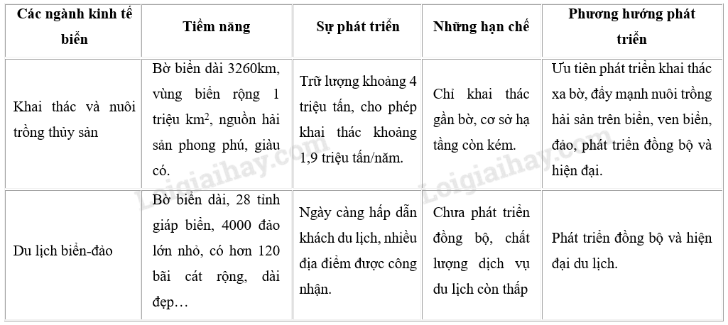 Các ngành kinh tế biển Tiềm năng Sự phát triển Những hạn chế Phương hướng phát triển