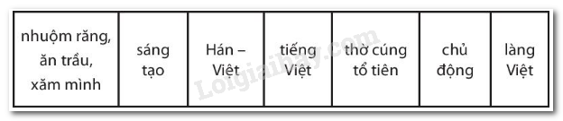 Chọn những từ cho sẵn để điển vào chỗ trống trong đoạn văn bên dưới. nhuộm răng, ăn trầu, xăm mình; sáng tạo; Hán – Việt; Tiếng Việt; Thờ cúng tổ tiên; chủ động; làng Việt