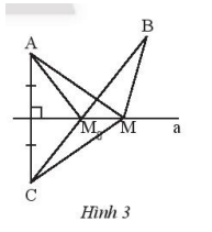 Bài 3 trang 55 Cho hai điểm A, B là vị trí của hai nhà máy cùng về mpptj phía bờ sông là đường thẩng a. Vẽ điểm C sao cho a là đường trung trực của AC. Lấy điểm M tùy yá trên a