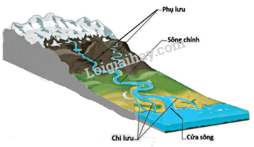 1. Dựa vào hình 17.1 trong SGK, những từ nào bên dưới không phải là bộ phận của một dòng sông lớn? (chọn nhiều đáp án).