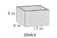 Một cái bể có kích thước như Hình 6. Bề dày bể cả bốn phía và đáy là \(\dfrac{1}{4}\) inch.