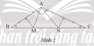 Ta có: \(\widehat {MAN} = \widehat {BAC} – \left( {\widehat {MAB} + \widehat {NAC}} \right) = {120^o} – \left( {\widehat B + \widehat C} \right) = {120^o} – {60^o} = {60^o}\)