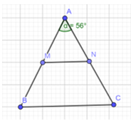 \( \Rightarrow \widehat M = \widehat N = ({180^o} – {56^o}):2 = {62^o}\)