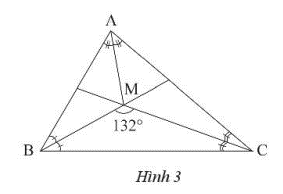 Ta có \(\widehat {MBC} + \widehat {MCB} = {180^o} – \widehat {BMC} = {180^o} – {132^o} = {48^o}\)