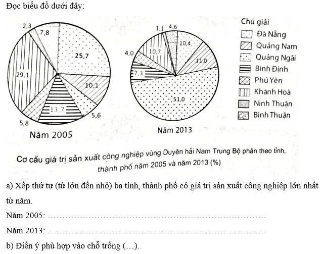 a) Xếp thứ tự (từ lớn đến nhỏ) ba tỉnh, thành phố có giá trị sản xuất công nghiệp lớn nhất từ năm.