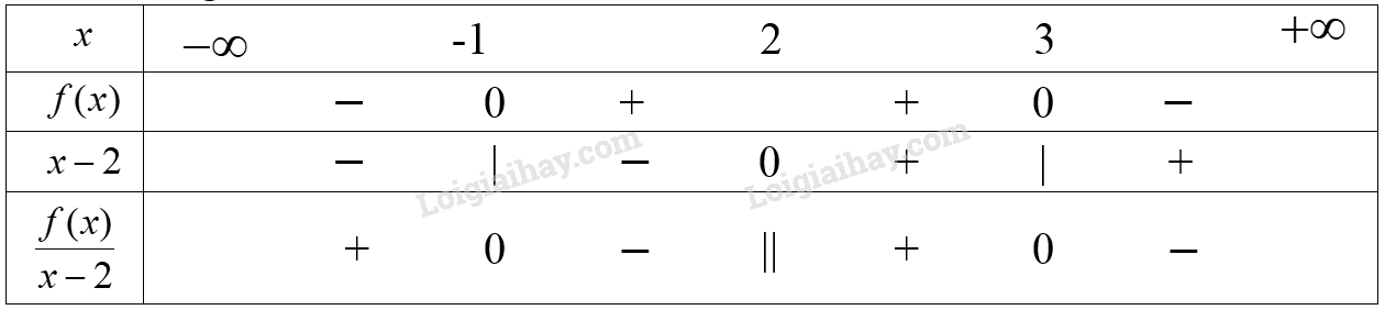 Ta có bảng xét dấu sau: