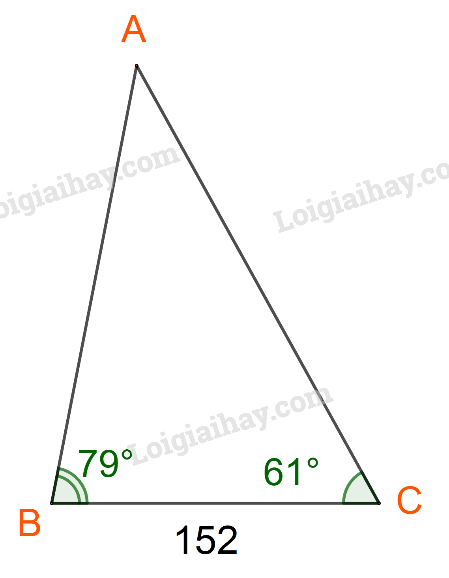 Ta có: \(a = 152;\widehat A = {180^o} – ({79^o} + {61^o}) = {40^o}\)