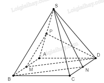 Do \(M\) là trung điểm \(AB\), \(P\) là trung điểm của \(SA\), ta suy ra \(MP\) là đường trung bình của tam giác \(SAB\). Suy ra \(MP\parallel SB\). Do \(MP \subset \left( {DMP} \right)\), ta kết luận rằng \(SB\parallel \left( {DMP} \right)\). Chứng minh tương tự ta cũng có \(BN\parallel \left( {DMP} \right)\). Như vậy \(\left( {SBN} \right)\parallel \left( {PMD} \right)\).