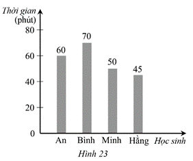 Bốn học sinh An, Bình, Minh, Hằng đã sắp xếp thời gian luyện tập cho giải Bóng rổ năng khiếu. Biểu đồ ở Hình 23 biểu diễn thời gian luyện tập trong ngày của bốn bạn đó.