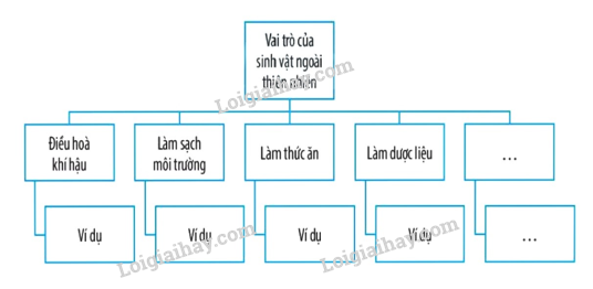 Xác định vai trò của sinh vật ngoài thiên nhiên bằng cách hoàn thành sơ đồ sau:
