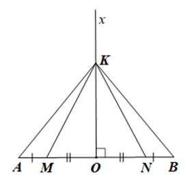 Cho điểm M nằm giữa hai điểm O và A. Vẽ các điểm N và B sao cho O là trung điểm của AB và MN. Vẽ tia Ox vuông góc với AB, trên tia Ox lấy điểm K. Chứng minh: