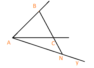 b) Vẽ tia Ay cắt đường thẳng BC tại N không nằm giữa B và C.