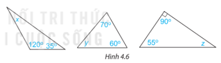 Tính các số đo x, ,y ,z trong Hình 4.6