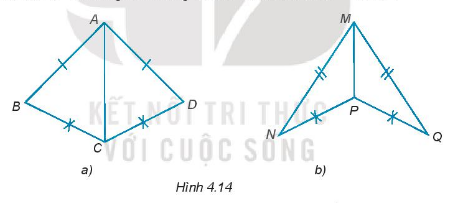 Cho hình 4.14, chứng minh rằng \(\Delta ABC = \Delta ADC;\Delta MNP = \Delta MQP.\)