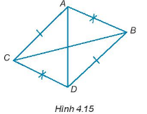 Cho hình 4.15, chứng minh rằng \(\Delta ABC = \Delta DCB;\Delta ADB = \Delta DAC\)