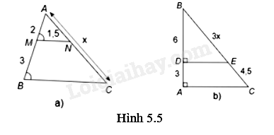 Sử dụng kiến thức về định lí Thalès để tính x: Nếu một đường thẳng song song với một cạnh của tam giác và cắt hai cạnh còn lại thì nó định ra trên hai cạnh đó những đoạn thẳng tương ứng tỉ lệ.