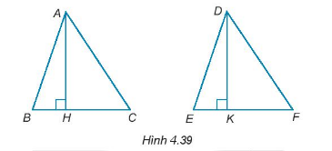 Cho AH và DK lần lượt là hai đường cao của tam giác ABC và DEF như Hình 4.39. Chứng minh rằng