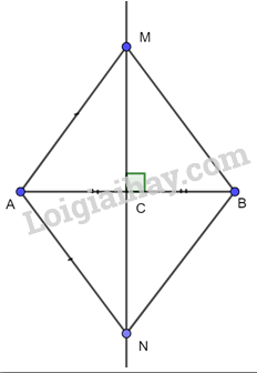 Vì M, N nằm trên đường trung trực của AB nên MA = MB ; NA = NB ( tính chất)