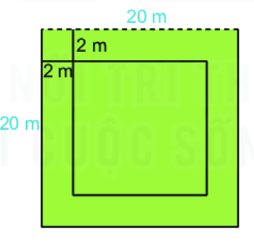 Bài 4 (4.26). Một mảnh vườn hình vuông cạnh 20m. Người ta làm một lối đi xung quanh vườn rộng 2m thuộc đất của vườn. Phần đất còn lại dùng để trồng trọt. Tính diện tích trồng trọt của mảnh vườn.