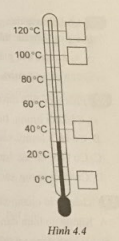 Hình 4.4 là sơ đồ đơn giản mô tả một nhiệt kế. a) Viết chữ S vào ô bên cạnh nhiệt độ sôi của nước. b) Viết chữ C vào ô bên cạnh nhiệt độ nóng chảy của nước đá.