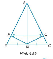 Cho tam giác ABC cân tại đỉnh A. Gọi M là trung điểm của BC. Trên cạnh AB và AC lấy các điểm P, Q sao cho MP, MQ lần lượt vuông góc với AB, AC (H.4.59)