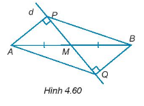 Cho đường thẳng d đi qua trung điểm M của đoạn thẳng AB và không vuông góc với AB. Kẻ AP, BQ \(\left( {P \in d,Q \in d} \right)\)vuông góc với đường thẳng d (H 4.60). Chứng minh rằng: