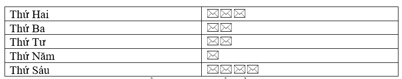 Xác định số biểu tượng ứng với số lượng tin nhắn các ngày trong tuần.
