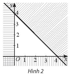 Miền tam giác không gạch chéo trong hình 2 là miền nghiệm của hệ bất phương trình nào trong các hệ bất phương trình nào dưới đấy?