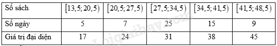 Ta có: \({x_1},…,{x_5} \in \left[ {13,5;20,5} \right),{x_6},…,{x_{12}} \in \left[ {20,5;27,5} \right),{x_{13}},…,{x_{37}} \in \left[ {27,5;34,5} \right),\) \({x_{38}},…,{x_{52}} \in \left[ {34,5;41,5} \right),{x_{53}},…,{x_{61}} \in \left[ {41,5;48,5} \right)\).