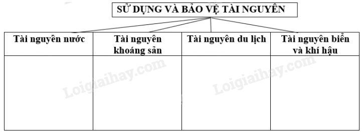 Hãy điền nội dung phù hợp vào sơ đồ dưới đây để thể hiện rõ việc sử dụng và bảo vệ tài nguyên ở Việt Nam.