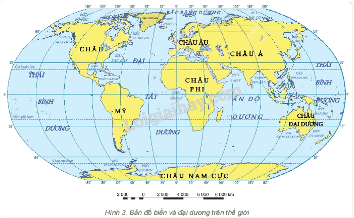 + Hình 3: Bản đồ biển và đại dương trên thế giới.