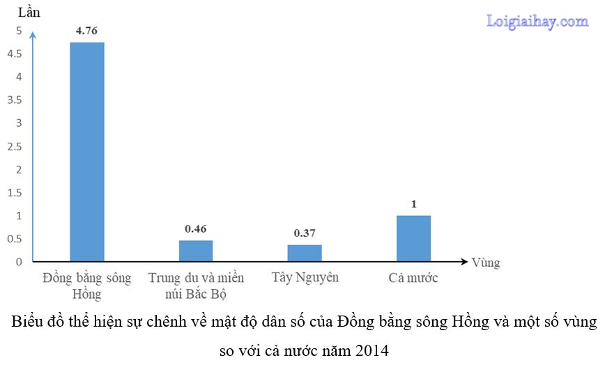 SỰ CHÊNH LỆCH VỀ MẬT ĐỘ DÂN SỐ CỦA ĐỒNG BẰNG SÔNG HỒNG VÀ MỘT SỐ VÙNG SO VỚI CẢ NƯỚC NĂM 2014 (Đơn vị: lần)