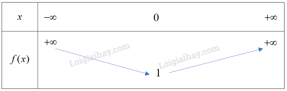 Vì hàm số bậc hai có \(a = 1 > 0\) nên ta có bảng biến thiên sau:
