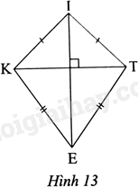 Bạn Hùng muốn làm một cái diều có dạng hình tứ giác KITE như Hình 13. Cho biết \(\widehat {KIT} = {90^0}\), \(\widehat {KET} = {70^0},\) \(IK = IT,\) \(EK = ET\).