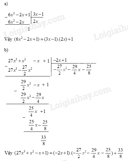 b) \((27{x^3} + {x^2} – x + 1):( – 2x + 1)\);