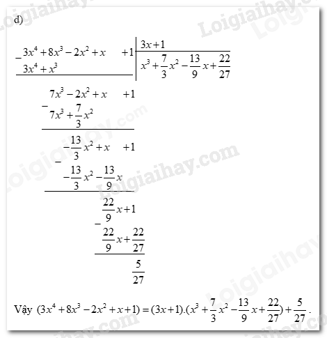 d) \((3{x^4} + 8{x^3} – 2{x^2} + x + 1):(3x + 1)\)