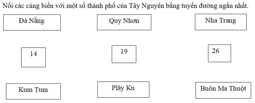 Giải bài 4 trang 68 vở bài tập Địa lí 9, Nối các cảng biển với một số thành phố của Tây Nguyên bằng tuyến đường ngắn nhất.